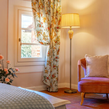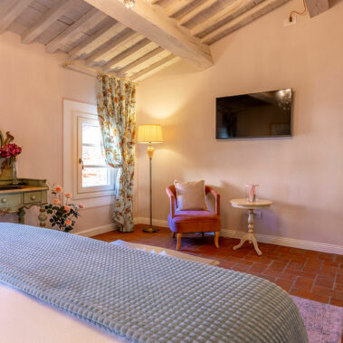 Nell’antichità l’Oleandro simboleggiava l’Armonia dell’Universo. Questa bella stanza di 26mq così armoniosa nei suoi colori tenui con sfumature di rosa chiaro per le pareti, il soffitto con travi a vista sbiancate, il pavimento in cotto originale, armonizza e alleggerisce la mente, fuga i pensieri negativi.